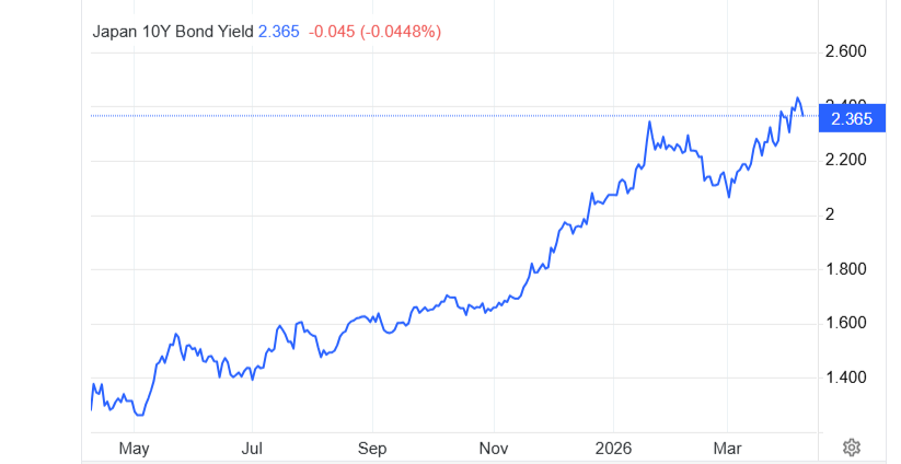 This concern is not theoretical. Japan’s bond market has already shown signs of stress. The 10-year JGB yield recently reached 2.43%, a 27-year high, reflecting investor unease over rising fiscal spending and policy direction. At the same time, long-term yields have surged even more sharply, with some maturities hitting multi-decade or record highs amid fears of increased borrowing and inflation risks.
